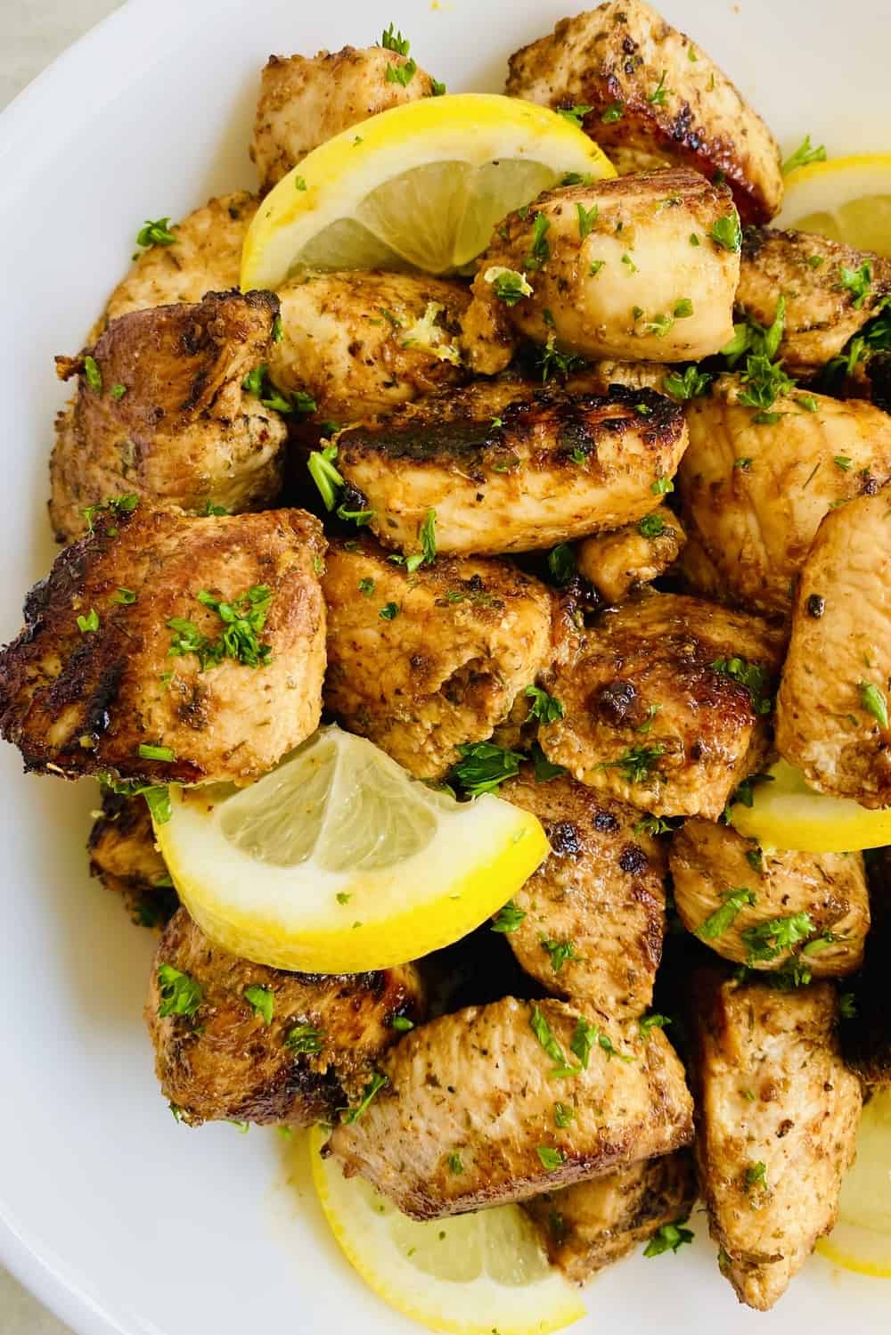 Marinated in lemon, garlic, and herbs, then grilled to juicy perfection.